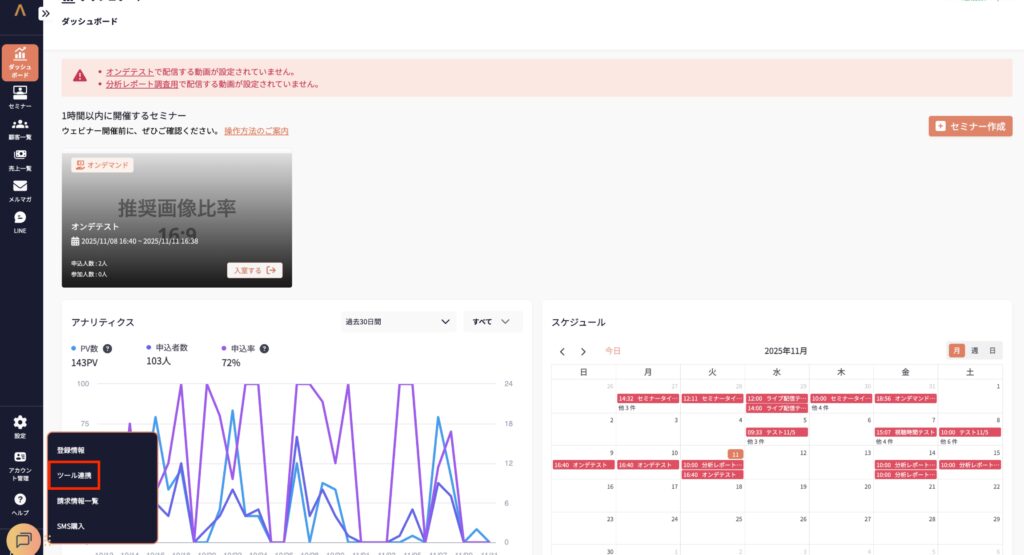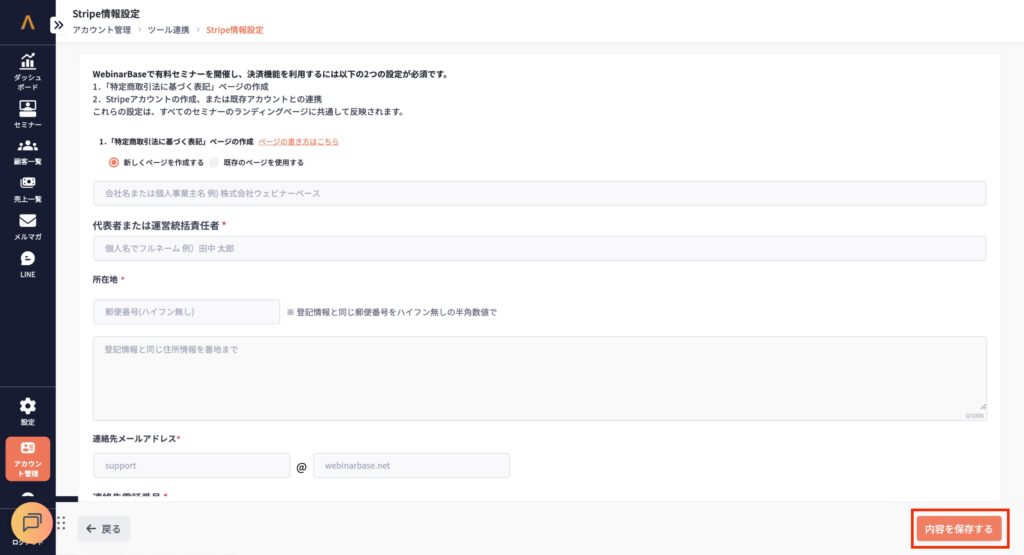 「確定する」をクリックすると、WebinarBaseの画面に戻ります。