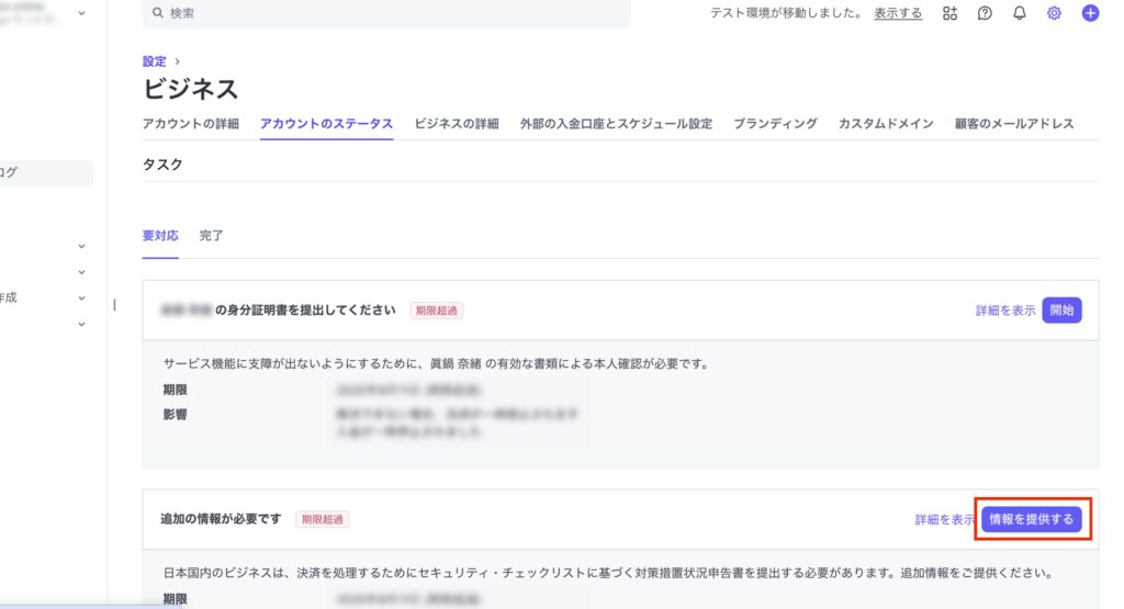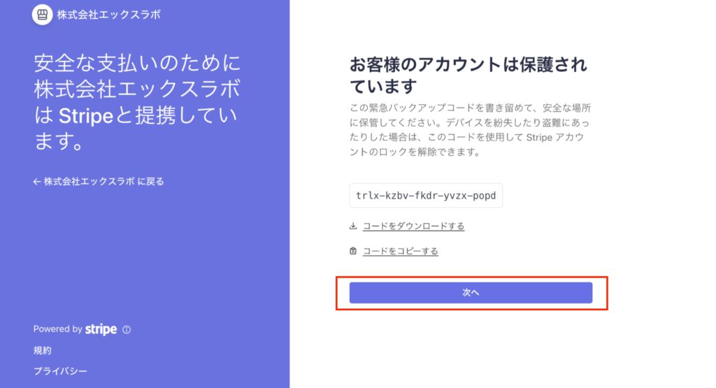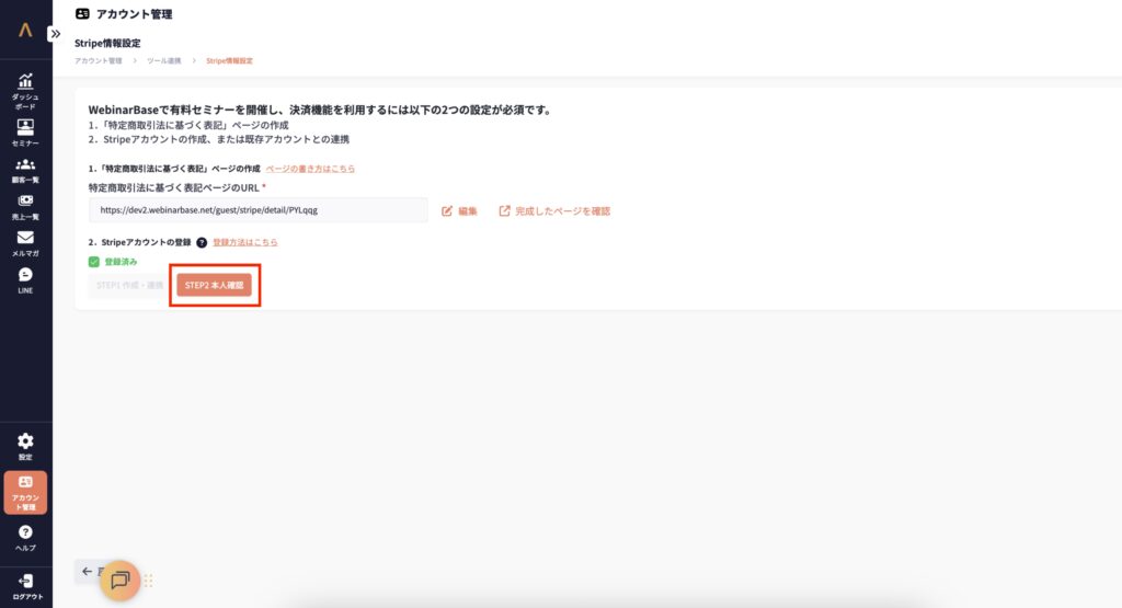 ⑤「STEP2本人確認」をクリックし、Stripeにログインします。