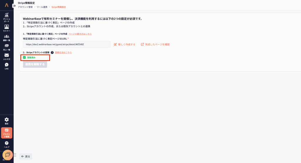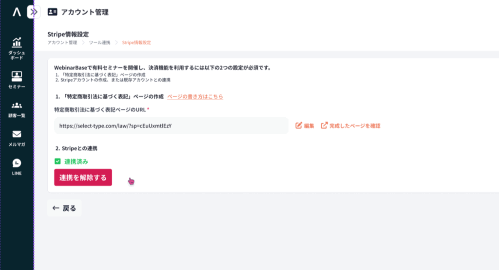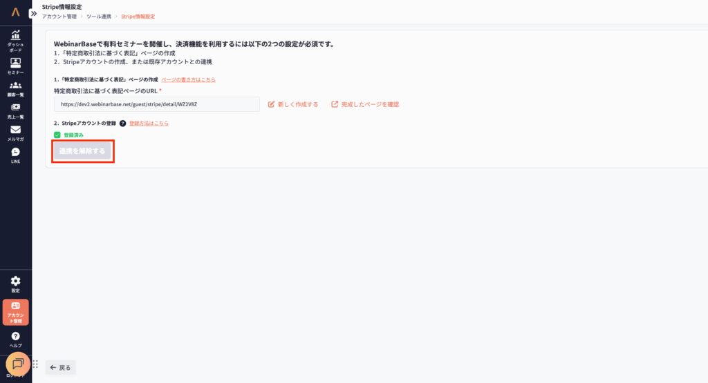 連携を解除するには、公開している有料セミナーを全て非公開にする必要があります。