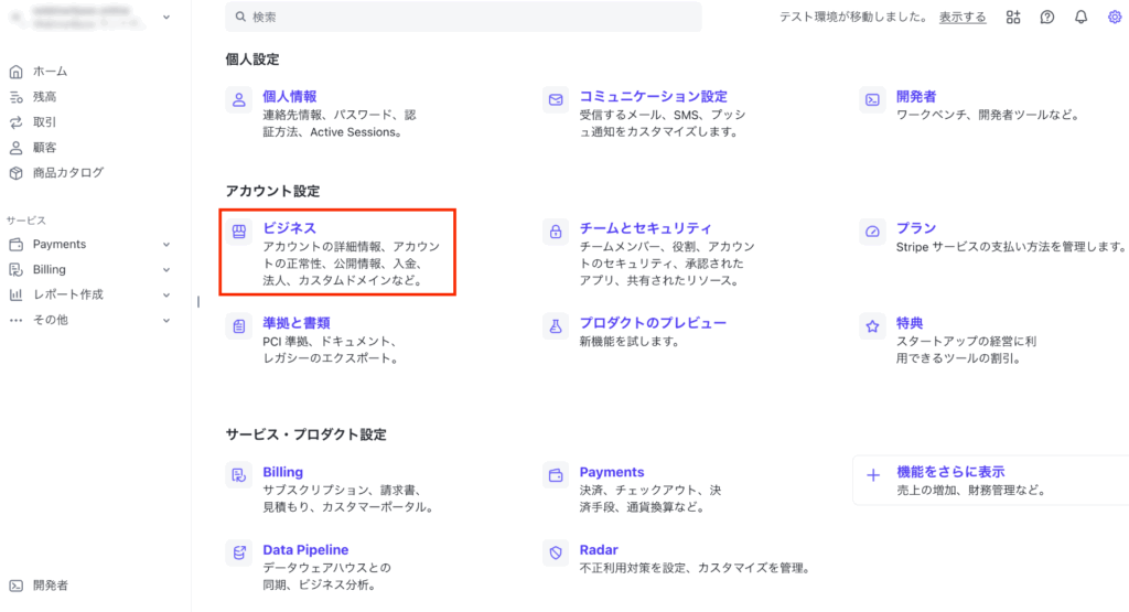 ⑥「アカウント設定」→「ビジネス」をクリックします。