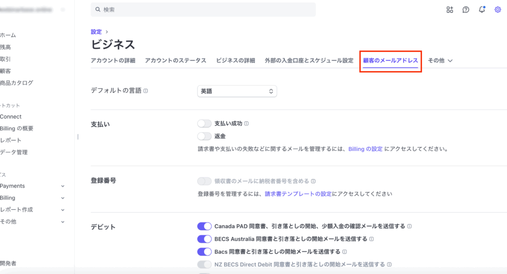 ONにすると支払いが成功した際に領収書付きのメールが送信されます。(基本はONで問題ないございません。)