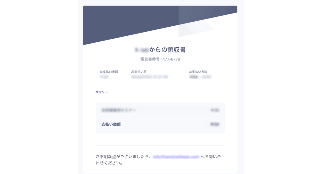 決済時に領収書を送付する場合は、決済完了メールの設定が必要です。