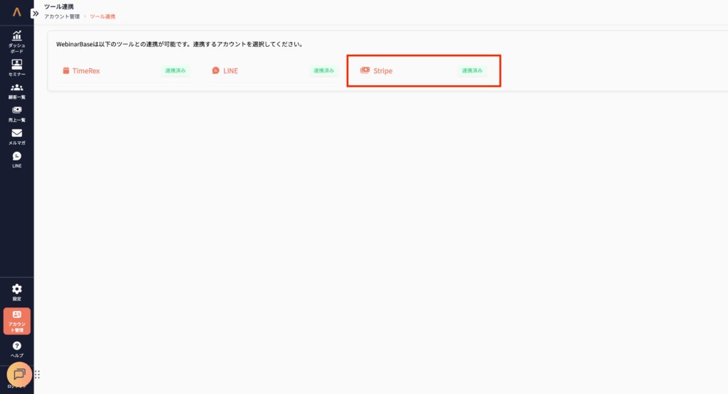 以下で、Stripeの連携・解除・変更方法について説明します。