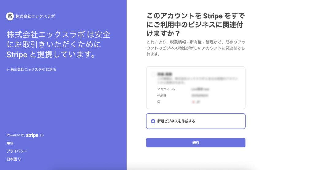すでにお持ちのアカウントのビジネス情報をWebinarBaseに連携するアカウントに関連づける場合は、表示されているビジネス情報をクリック、新しくビジネスを作成する場合は、「新規ビジネスを作成する」をクリックします。
