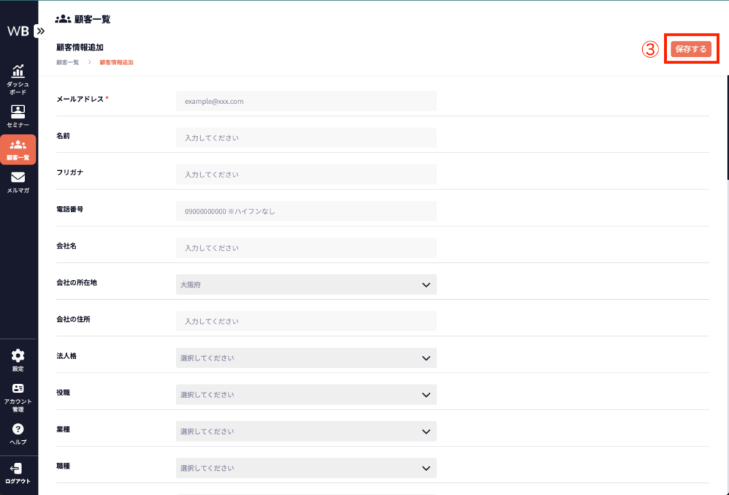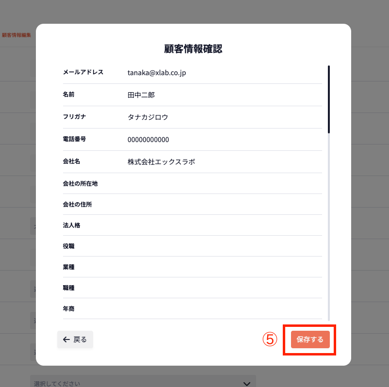 ④ 顧客情報の内容を確認して、[保存する]をクリックする