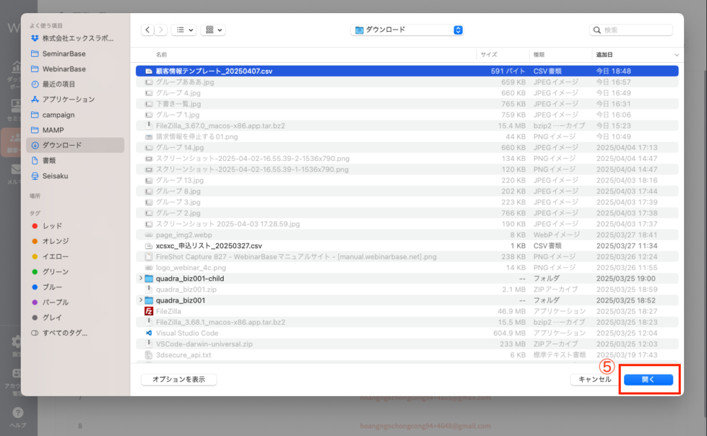 ⑤ 顧客情報を入力したCSVファイルをアップロードする