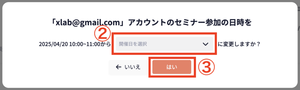 セミナー申込者から参加日時の変更依頼があった場合、別日程に変更することができます。