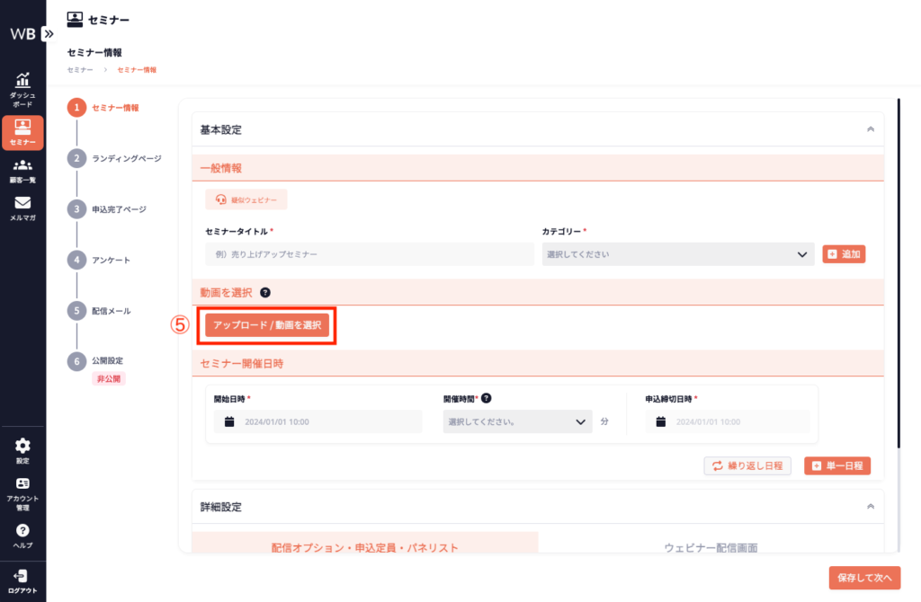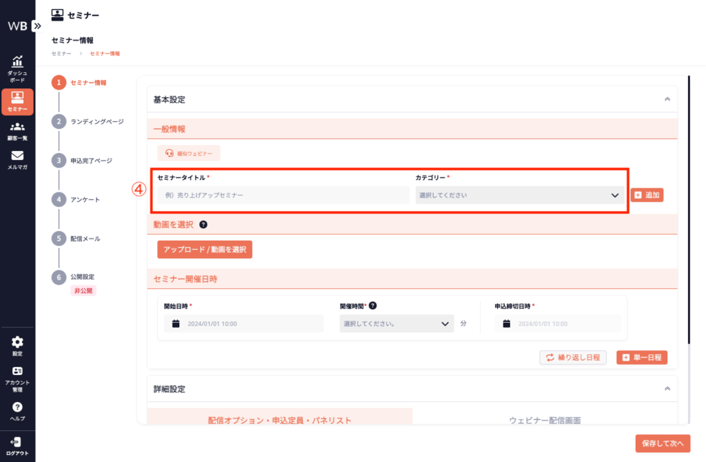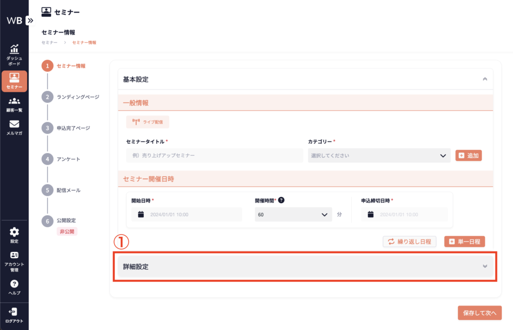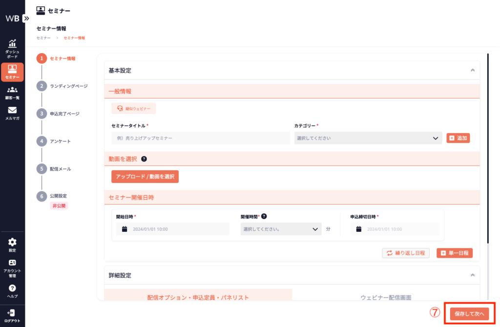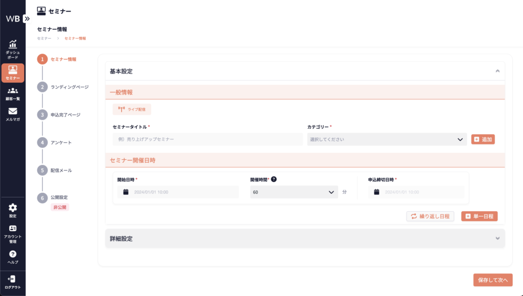 詳細設定は必須ではありませんが、設定することでセミナーの効果をより一層高めることができます。
