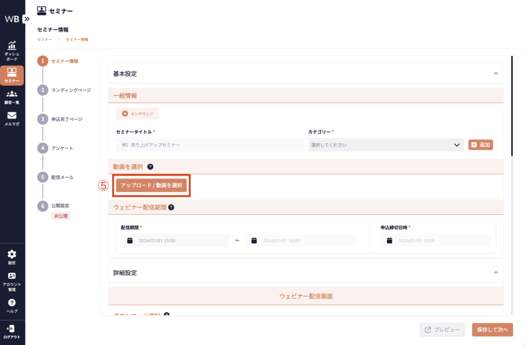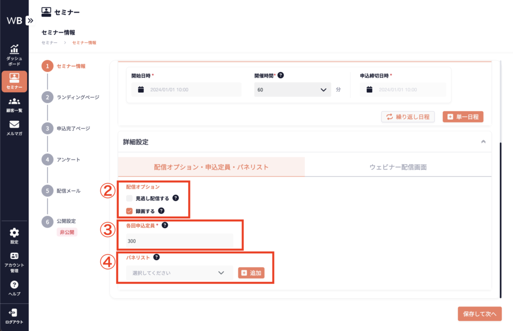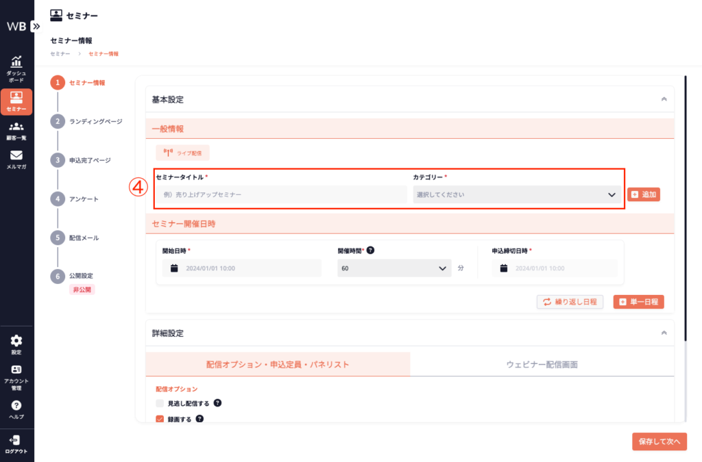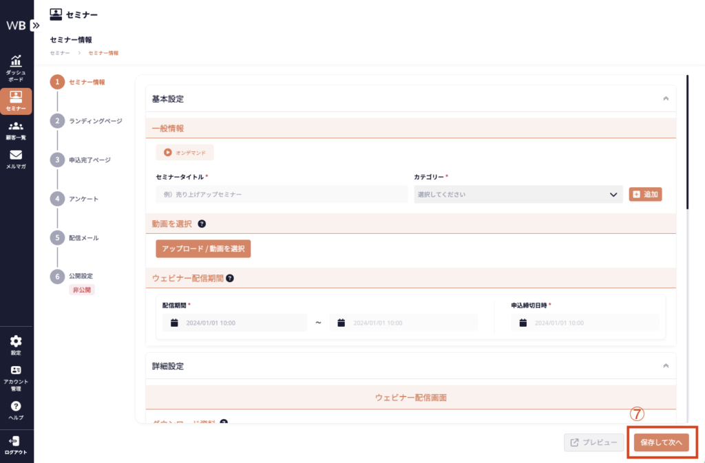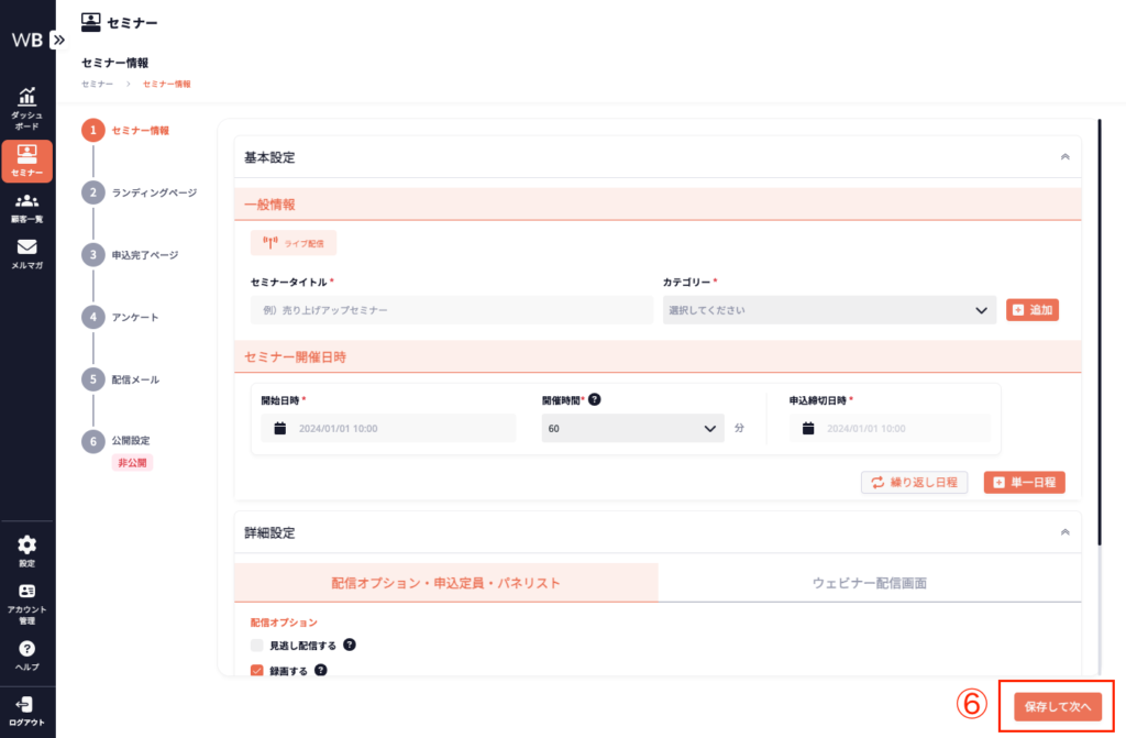 詳細設定は必須ではありませんが、設定することでセミナーの効果をより一層高めることができます。