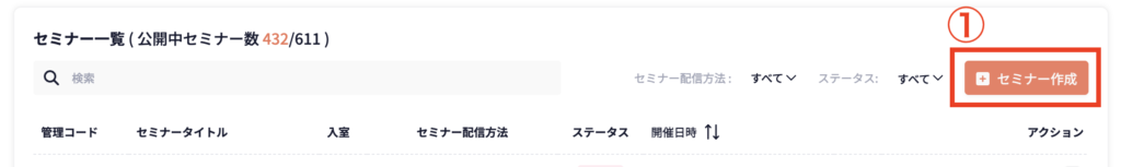 ① [セミナー作成]をクリックする