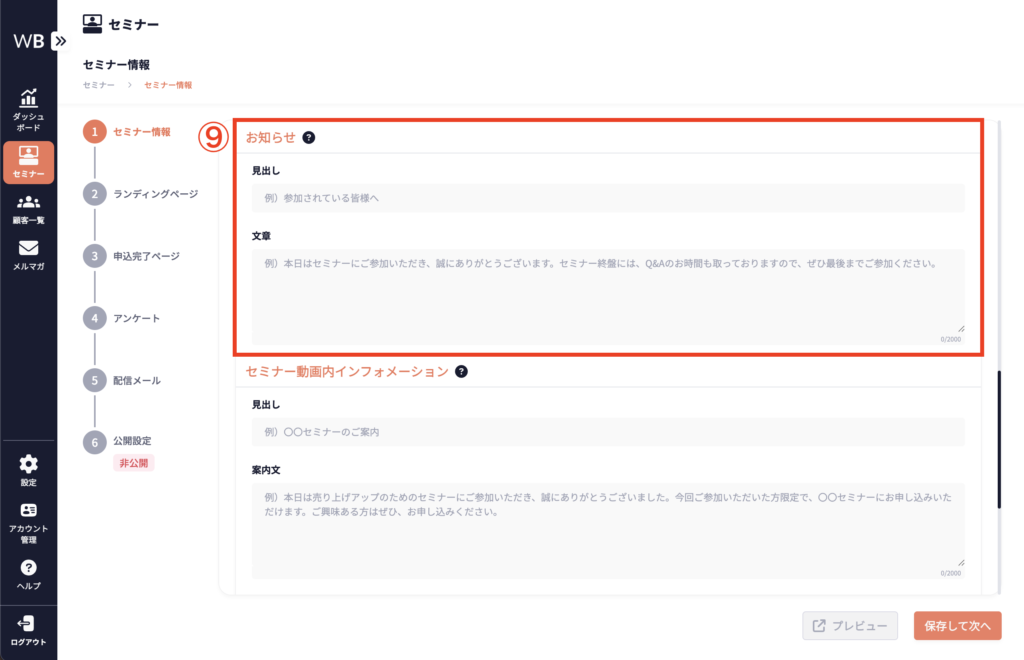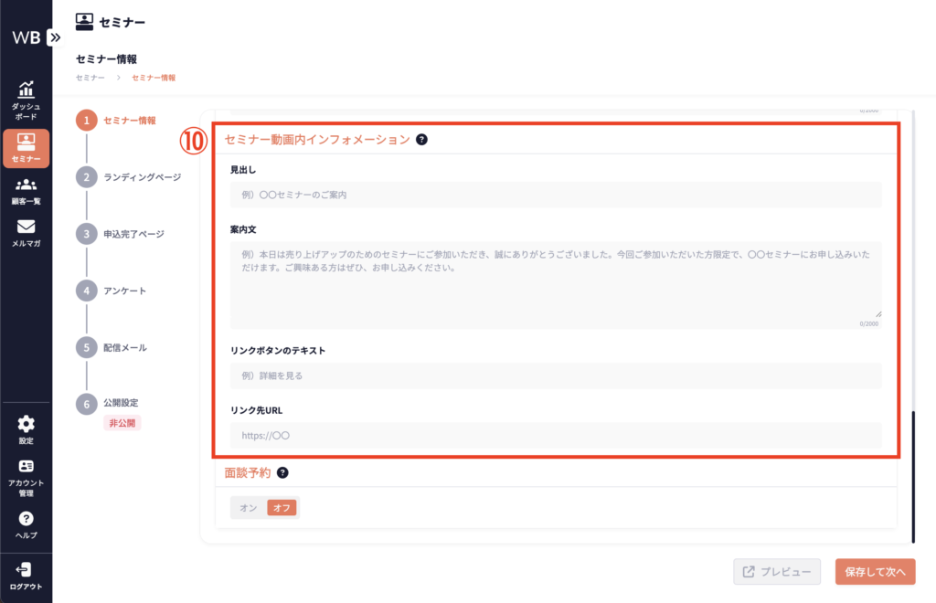 ⑩ [セミナー動画内インフォメーション]を入力する