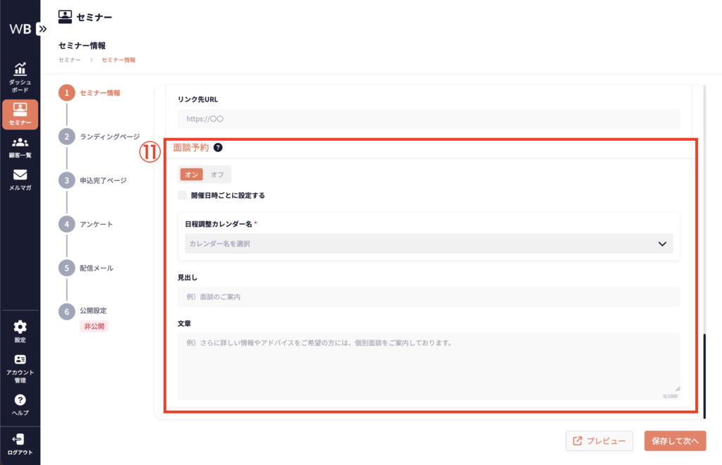 ⑪ [面談設定]を入力する