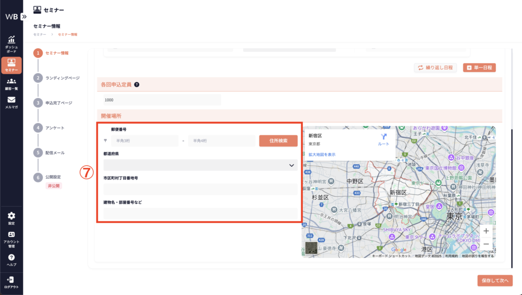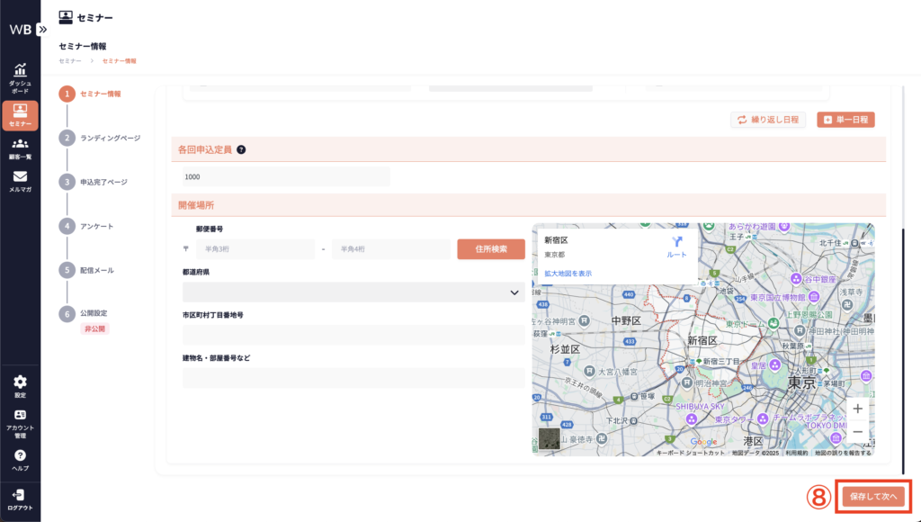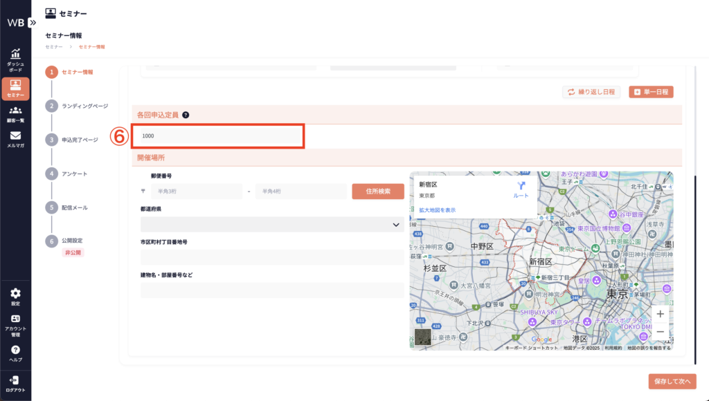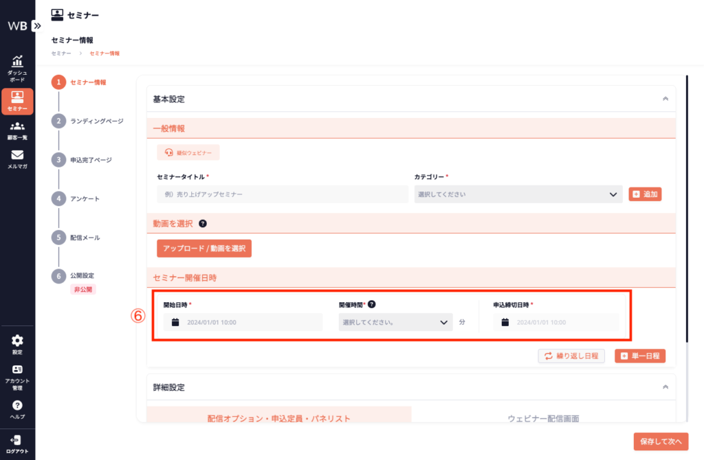 ⑥ [セミナー開催日時]を入力する