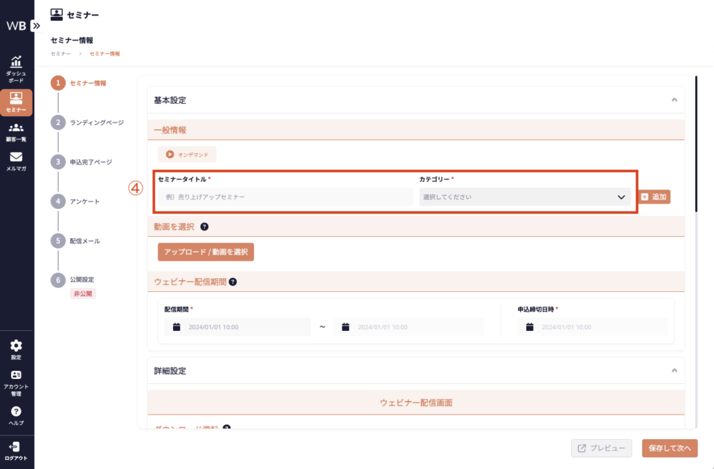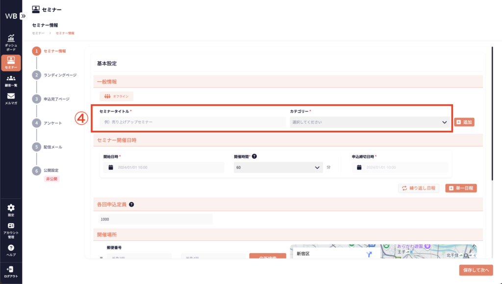 ④ [セミナータイトル] [カテゴリー]を入力する