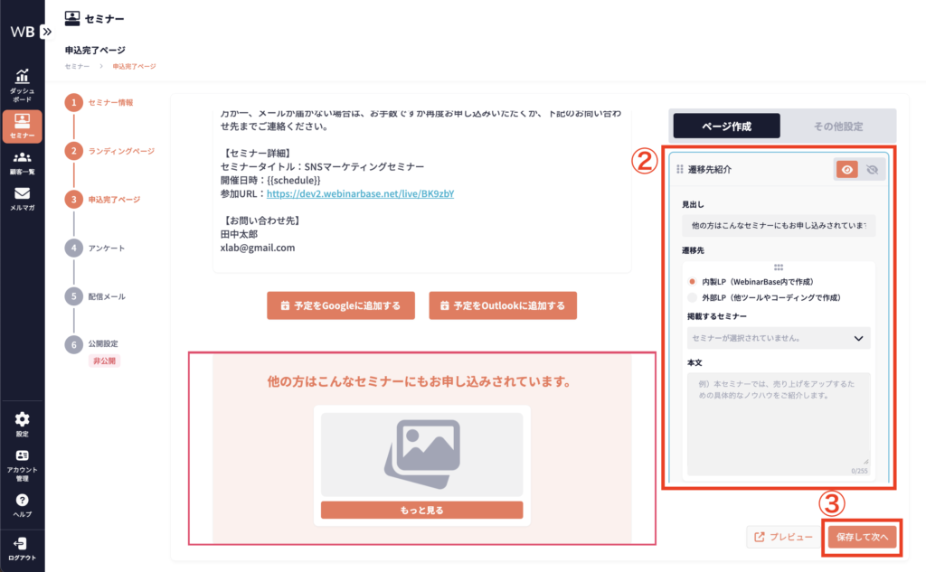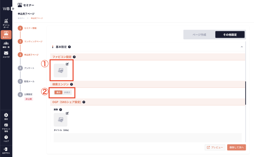 ここで設定した情報は、ランディングページと申込完了ページの両方に適用されます。