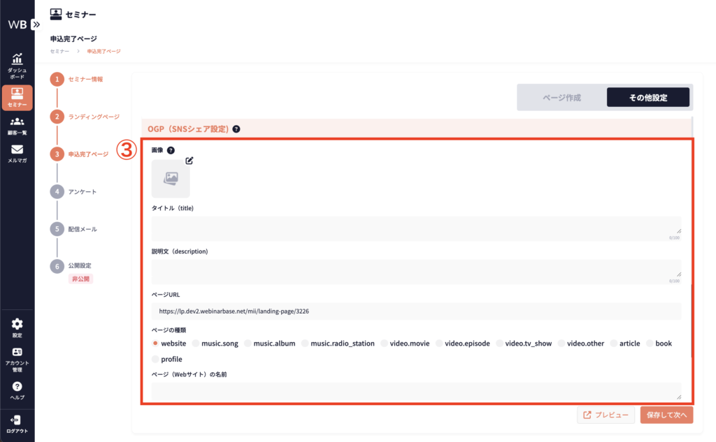 ③ OGP設定に必要な項目を入力する