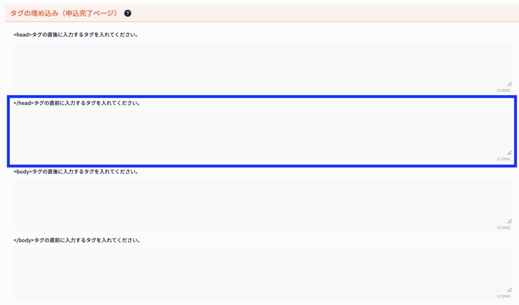 </head>タグの直前にタグを入れたい場合は、こちらに入力してください。