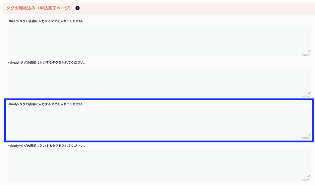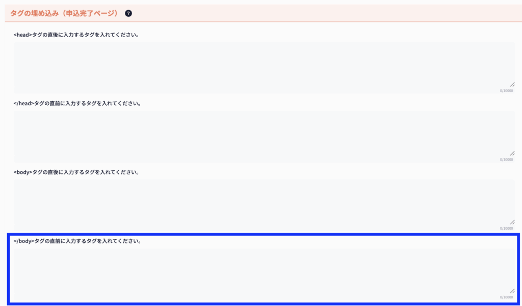 </body>タグの直前にタグを入れたい場合は、こちらに入力してください。